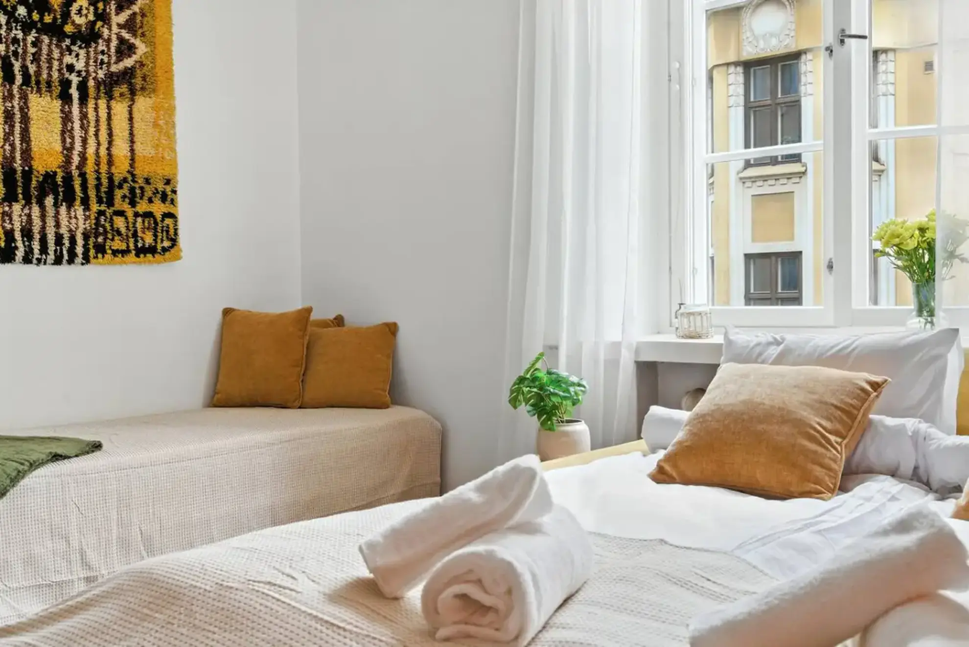 Stay in a bright and spacious 2-room apartment in lively Punavuori for up to 7 guests. Enjoy a fully equipped kitchen, fast Wi-Fi, Netflix and all amenities. Fresh linens, towels and cleaning are always included. Premium location in a trendy yet quiet neighborhood close to shops, cafés and galleries. Distances to top attractions: Tram & bus: 200 m Central Station: 1.2 km Esplanadi Park: 850 m Market Square: 1.1 km St. John’s Church: 600 m Senate Square: 1.2 km Book anytime or message us today! Spacious City Apartment in Punavuori – Walk Everywhere, Sleeps 7, Netflix & Fast Wi-Fi Enjoy a bright, modern and fully equipped apartment in the heart of Helsinki’s Design District. Located in trendy yet peaceful Punavuori, this 2-room flat is ideal for families, groups and business travelers. Just 200 m to public transport, with top sights, restaurants and shops steps away — a calm home base in a vibrant central location. What you’ll enjoy: • Sleeps up to 7 guests comfortably – Queen bed + single bed in the bedroom – Sofa bed + stackable double bed in the living room • Fully equipped kitchen with dishwasher and cooking essentials • Washing machine – ideal for longer stays • Fast Wi-Fi and Smart TV with Netflix for streaming • Work desk – great for remote work • Art and warm design touches • Elevator access • Self check-in for easy arrivals • Bed linen, towels & final cleaning included • Blackout curtains for restful sleep Unbeatable central location: Punavuori borders the city center and offers easy access to all attractions. This creative, walkable neighborhood is full of cozy cafés, boutiques and galleries — a favorite among locals and visitors alike. Perfect for short or long stays. No parties or events allowed. Book your stay now or message us anytime — we’re happy to help! You will have exclusive access to the entire apartment. Comprising a welcoming living room, bedroom, fully equipped kitchen, hallway, bathroom and shower. The entire apartment is fully yours for the duration of your stay. We are here to make your stay enjoyable. Feel free to reach out anytime through Airbnb or by mobile for any assistance. Looking forward to ensure you have the best time! Get ready for good vibes and great time. Welcome to Helsinki! Send us a message if you have any questions!