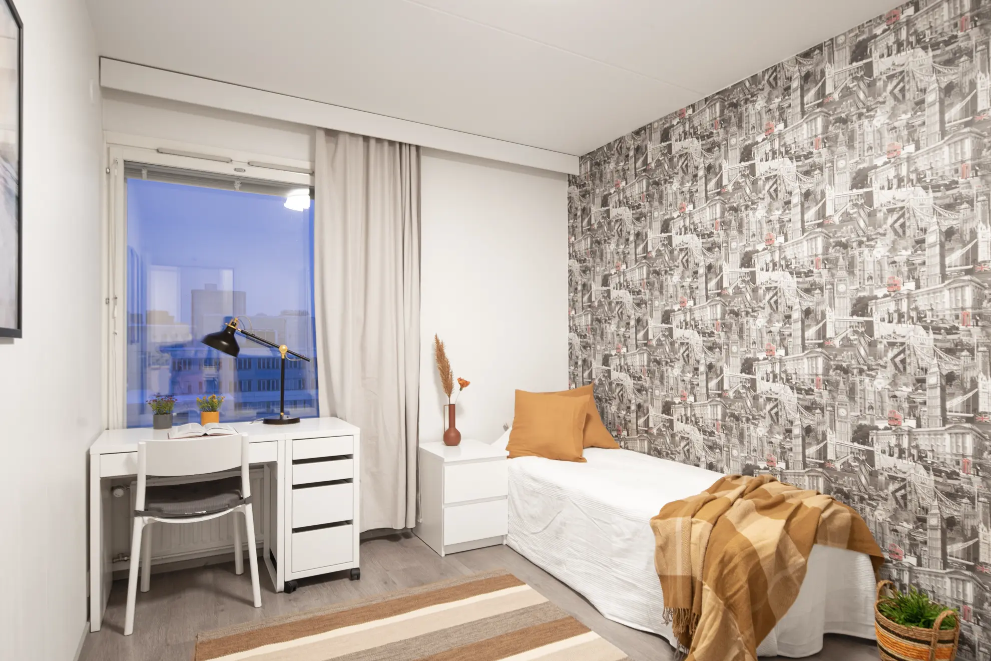 "*** LOCATION, LOCATION, LOCATION *** *** All-inclusive rate: water, electricity, heating and internet *** *** Safe area close to city centre, excellent public transportation options *** *** We are a registered Finnish company with 7 days a week customer service *** ROOMS Stylish, furnished rooms in a renovated building in Pasila, on the 8th floor suitable for female tenants. This rooms has Nordic-style furniture, everything you need for a comfortable daily life: a bed, night table, desk space, chair, lamp, wardrobes, window blinds, and bedlinen – you will have less to worry, and you can focus on getting the most out of your stay! APARTMENT & BUILDING This apartment has a equipped kitchen to ensure you will be able to prepare your favourite daily meals. The apartment has also a balcony that all tenants may use. The fixtures include: • cooker/oven • microwave oven • fridge/freezer • washing machine • iron/board • coffee machine & electric kettle • kitchen utensils • vacuum cleaner • fast-speed WiFi This high-rise building has an elevator, a sauna, and a laundry room. Extra luggage and belongings may be stored in the apartment’s dedicated storage space. Bicycles, and outdoor activity equipment have their own dedicated storage space. LOCATION & DISTANCES This apartment is very centrally located with its own character and commercial flavour. Total travel time to city Centre is 15mins. Bordering Central Park to the west, Käpylä to the North, Alppila to the South and Vallila to the East, Pasila is a commercially active area with wide selection of services. This is a safe Helsinki locality around the clock. Pasila is famous for Mall of Tripla – the largest mall in Northern Europe in terms of number of outlets. The mall is also a key hub for public transportation. There are over 250 stores including indoor surfing and volleyball, bars, restaurants and a movie theatre. The mall is within a short walking distance from the apartment. Moreover, Helsinki Exhibition Center and Helsinki Arena – the largest event venues in Finland, are situated in this area. Pasila is also the home for high-quality Finnish education institutions such as Haaga-Helia University of Applied Sciences and Helsinki Business College. Transportation options are excellent and include busses, trains and trams. The area offers a wide range of services from grocery shops to sports facilities, which should cover your needs. Below a list of select local amenities along with estimated distances and travel times: • Central train station/city center – 3.7km / 15mins • Grocery shop/ATM – 150m / 2mins • Pharmacy – 700m / 9mins • Käpylä Swimming hall – 450m / 6mins • Haaga-Helia University of Applied Sciences – 800m / 10mins • Helsinki Business College – 700m / 8mins • Helsinki University – 4.4km / 28mins • Stadin Ammattiopisto – 600m / 7mins • Helsinki Arena – 1.5km / 14mins • Helsinki Exhibition Center – 650m / 7mins • Library – 650m / 8mins • Holiday Inn – 700m / 8mins • Hospital – 1.5km / 17mins • Dentist – 60m / 1mins POLICIES & DOCUMENTS REQUIRED • Passport / official ID of the tenant • Rent payment: 2nd of each month • Payment method: bank transfer MOVE-IN • Keys will be delivered to our key service partner near the apartment following the completion of payments • You will be able to pick-up the keys at a time most convenient to you typically from 07:30 – 21:30 Monday to Sunday • You will need to prove your identity at the pick-up LANDLORD We are a registered Finnish company founded in 2005, specializing in fully furnished stylish private rooms in central locations with all-inclusive rates. We manage only our own properties. We are driven by passion to offer tenants around the world a simple moving process, superior customer service and an enjoyable stay. We have the honor to host +150 tenants annually in our apartments that are on average less than 15mins from Helsinki city center. Our team is dedicated of making your move-in as effortless and stress free as possible. Regardless of the tenure of your stay, we have the perfect option for you. We welcome you to join our community of international residents, and allow us to offer you a place to stay. We are looking forward hearing from you."