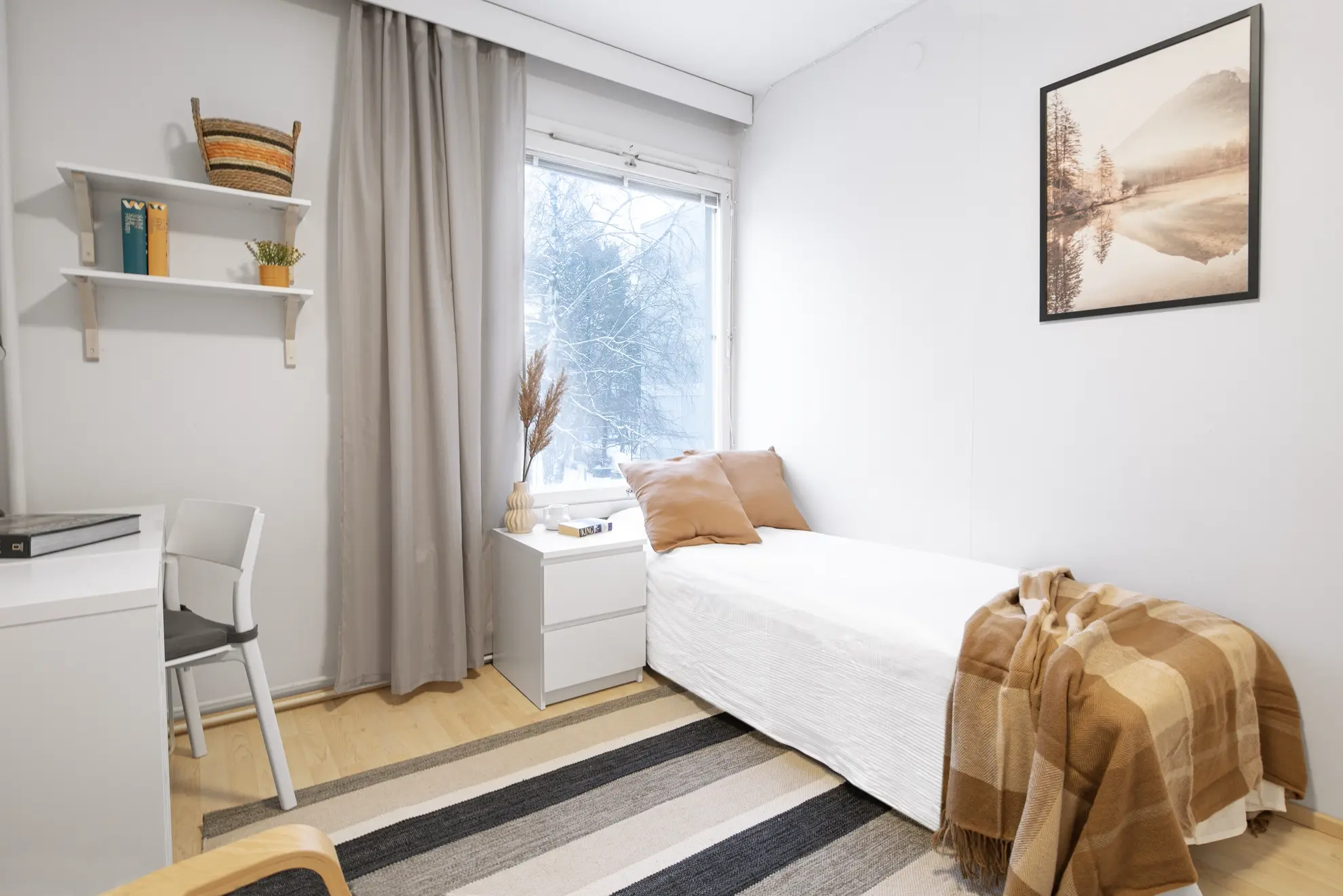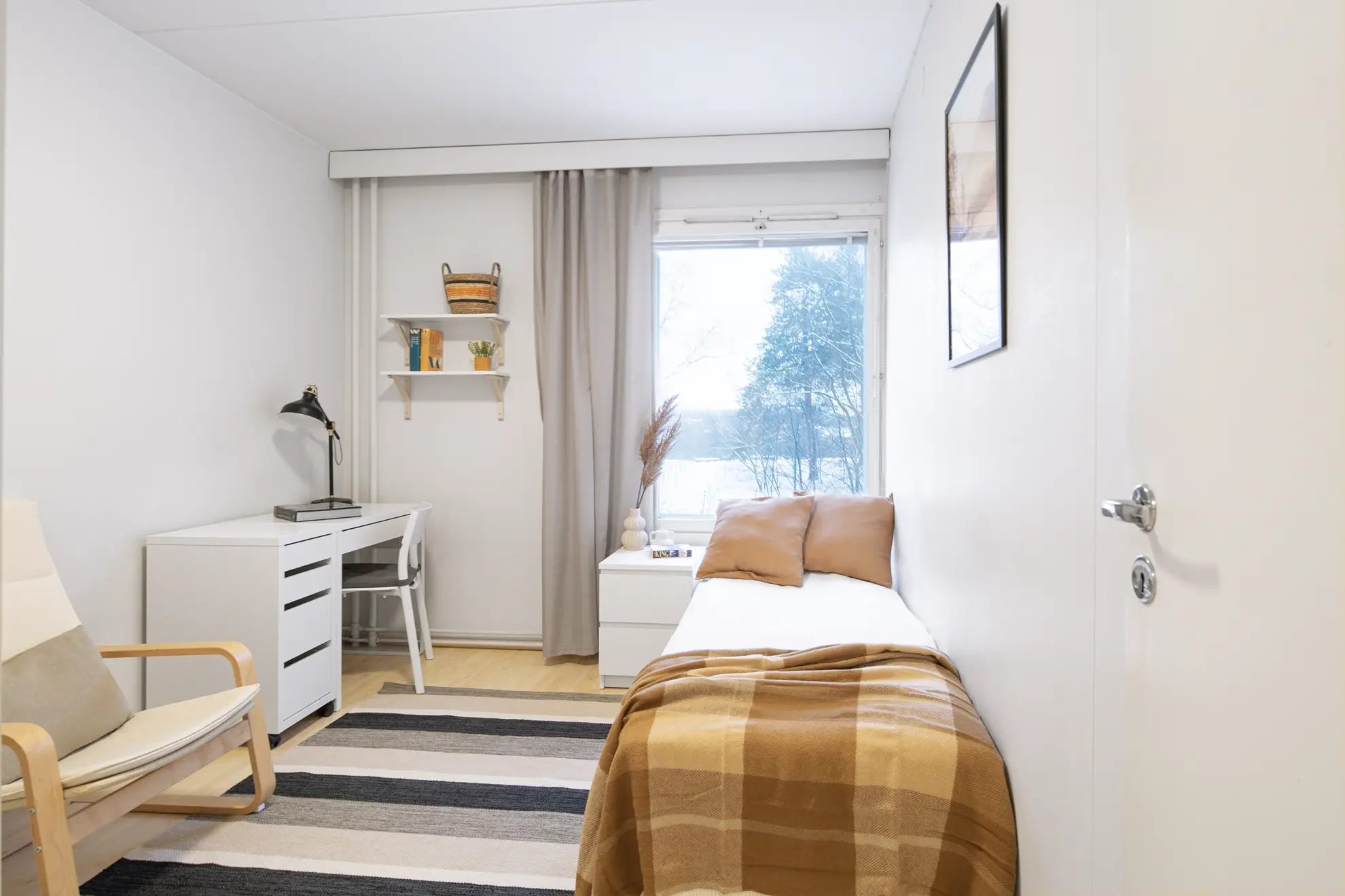 "*** LOCATION, LOCATION, LOCATION *** *** All-inclusive rate: water, electricity, heating and internet *** *** Safe area close to city centre, excellent public transportation options *** *** We are a registered Finnish company with 7 days a week customer service *** ROOMS Stylish, furnished private rooms in a renovated building in Pasila located on the 2nd floor. This rooms has Nordic-style furniture, everything you need for a comfortable daily life: a bed, night table, desk space, chair, lamp, wardrobes, window blinds, and bedlinen – you will have less to worry, and you can focus on getting the most out of your stay! APARTMENT & BUILDING This apartment has a equipped kitchen to ensure you will be able to prepare your favourite daily meals. The apartment has also a balcony that all tenants may use. The fixtures include: • cooker/oven • microwave oven • fridge/freezer • washing machine • iron/board • coffee machine & electric kettle • kitchen utensils • vacuum cleaner • fast-speed WiFi This high-rise building has an elevator, a sauna, and a laundry room. Extra luggage and belongings may be stored in the apartment’s dedicated storage space. Bicycles, and outdoor activity equipment have their own dedicated storage space. LOCATION & DISTANCES This apartment is very centrally located with its own character and commercial flavour. Total travel time to city Centre is 15mins. Bordering Central Park to the west, Käpylä to the North, Alppila to the South and Vallila to the East, Pasila is a commercially active area with wide selection of services. This is a safe Helsinki locality around the clock. Pasila is famous for Mall of Tripla – the largest mall in Northern Europe in terms of number of outlets. The mall is also a key hub for public transportation. There are over 250 stores including indoor surfing and volleyball, bars, restaurants and a movie theatre. The mall is within a short walking distance from the apartment. Moreover, Helsinki Exhibition Center and Helsinki Arena – the largest event venues in Finland, are situated in this area. Pasila is also the home for high-quality Finnish education institutions such as Haaga-Helia University of Applied Sciences and Helsinki Business College. Transportation options are excellent and include busses, trains and trams. The area offers a wide range of services from grocery shops to sports facilities, which should cover your needs. Below a list of select local amenities along with estimated distances and travel times: • Central train station/city center – 3.7km / 15mins • Grocery shop/ATM – 150m / 2mins • Pharmacy – 700m / 9mins • Käpylä Swimming hall – 450m / 6mins • Haaga-Helia University of Applied Sciences – 800m / 10mins • Helsinki Business College – 700m / 8mins • Helsinki University – 4.4km / 28mins • Stadin Ammattiopisto – 600m / 7mins • Helsinki Arena – 1.5km / 14mins • Helsinki Exhibition Center – 650m / 7mins • Library – 650m / 8mins • Holiday Inn – 700m / 8mins • Hospital – 1.5km / 17mins • Dentist – 60m / 1mins POLICIES & DOCUMENTS REQUIRED • Passport / official ID of the tenant • Rent payment: 2nd of each month • Payment method: bank transfer MOVE-IN • Keys will be delivered to our key service partner near the apartment following the completion of payments • You will be able to pick-up the keys at a time most convenient to you typically from 07:30 – 21:30 Monday to Sunday • You will need to prove your identity at the pick-up LANDLORD We are a registered Finnish company founded in 2005, specializing in fully furnished stylish private rooms in central locations with all-inclusive rates. We manage only our own properties. We are driven by passion to offer tenants around the world a simple moving process, superior customer service and an enjoyable stay. We have the honor to host +150 tenants annually in our apartments that are on average less than 15mins from Helsinki city center. Our team is dedicated of making your move-in as effortless and stress free as possible. Regardless of the tenure of your stay, we have the perfect option for you. We welcome you to join our community of international residents, and allow us to offer you a place to stay. We are looking forward hearing from you."